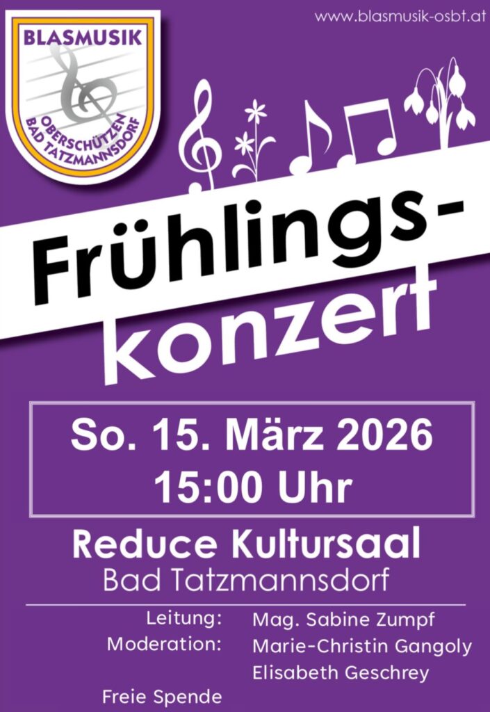 Der Frühling ist da – und mit ihm auch unser Frühlingskonzert! 🌷✨🌼 Am Sonntag, 30. März um 15:00 Uhr laden wir euch ein, den Frühling mit Blasmusikklängen zu begrüßen.